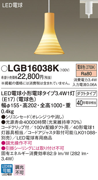 Panasonic LED ¥Ú¥ó¥À¥ó¥È¥é¥¤¥È LGB16038K