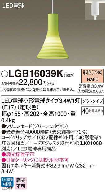 Panasonic LED ¥Ú¥ó¥À¥ó¥È¥é¥¤¥È LGB16039K
