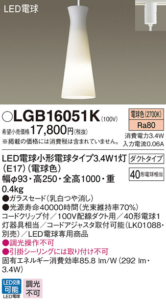Panasonic LED ¥Ú¥ó¥À¥ó¥È¥é¥¤¥È LGB16051K