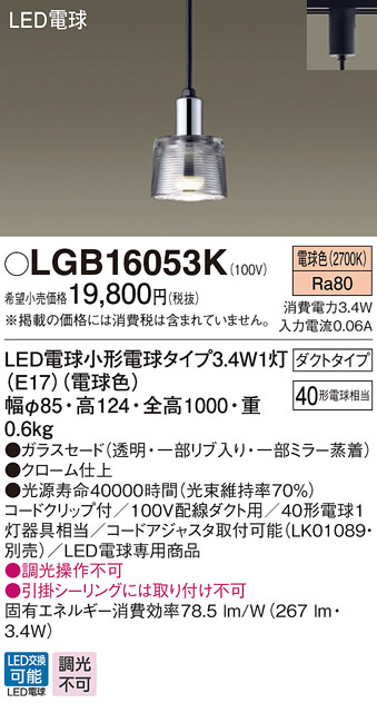 Panasonic LED ¥Ú¥ó¥À¥ó¥È¥é¥¤¥È LGB16053K