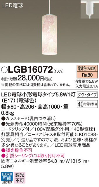 Panasonic LED ¥Ú¥ó¥À¥ó¥È¥é¥¤¥È LGB16072