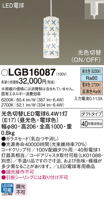 Panasonic ¥Ú¥ó¥À¥ó¥È LGB16087