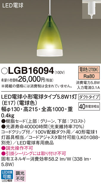Panasonic LED ¥Ú¥ó¥À¥ó¥È¥é¥¤¥È LGB16094