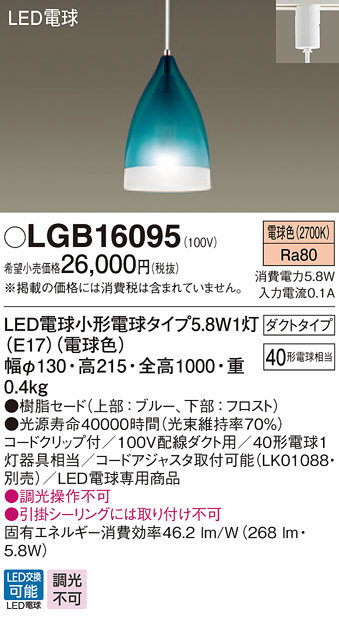 Panasonic LED ¥Ú¥ó¥À¥ó¥È¥é¥¤¥È LGB16095