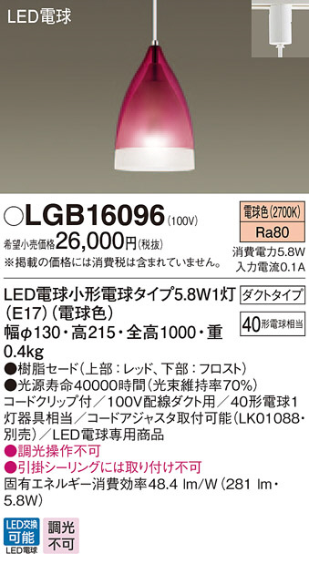 Panasonic LED ¥Ú¥ó¥À¥ó¥È¥é¥¤¥È LGB16096