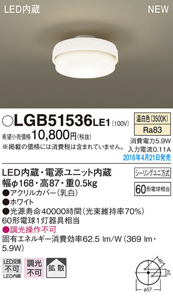 PANASONIC ¥Ñ¥Ê¥½¥Ë¥Ã¥¯ ¥·¡¼¥ê¥ó¥°¥é¥¤¥È LGB51536LE1