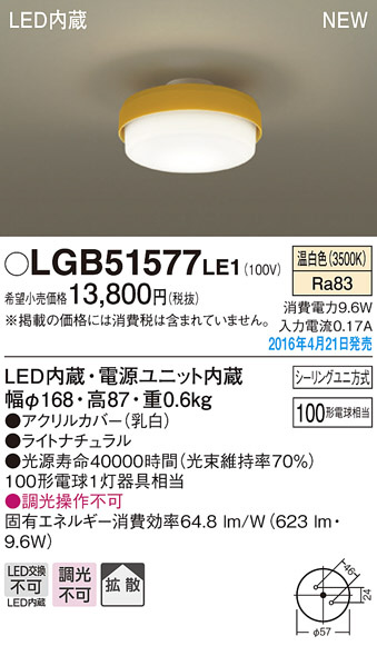 PANASONIC ¥Ñ¥Ê¥½¥Ë¥Ã¥¯ ¥·¡¼¥ê¥ó¥°¥é¥¤¥È LGB51577LE1