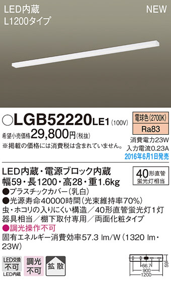PANASONIC ¥Ñ¥Ê¥½¥Ë¥Ã¥¯ ¥¥Ã¥Á¥ó¥é¥¤¥È LGB52220LE1