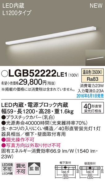 PANASONIC ¥Ñ¥Ê¥½¥Ë¥Ã¥¯ ¥¥Ã¥Á¥ó¥é¥¤¥È LGB52222LE1