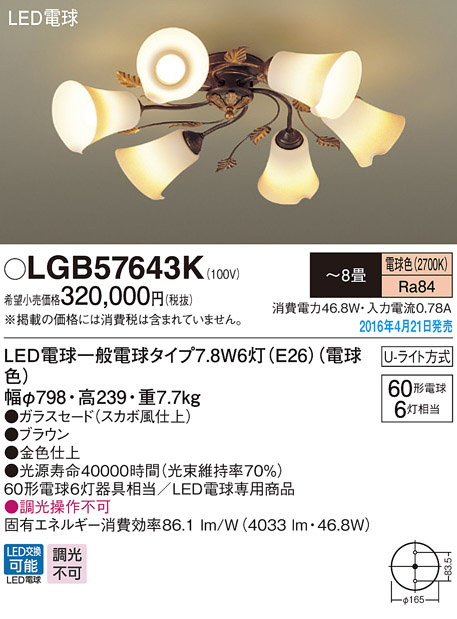 PANASONIC ¥Ñ¥Ê¥½¥Ë¥Ã¥¯ ¥·¥ã¥ó¥Ç¥ê¥¢ LGB57643K