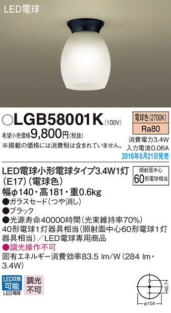 PANASONIC ¥Ñ¥Ê¥½¥Ë¥Ã¥¯ ¥·¡¼¥ê¥ó¥°¥é¥¤¥È LGB58001K