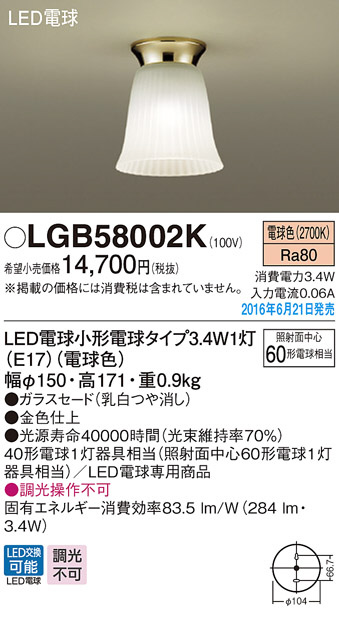PANASONIC ¥Ñ¥Ê¥½¥Ë¥Ã¥¯ ¥·¡¼¥ê¥ó¥°¥é¥¤¥È LGB58002K