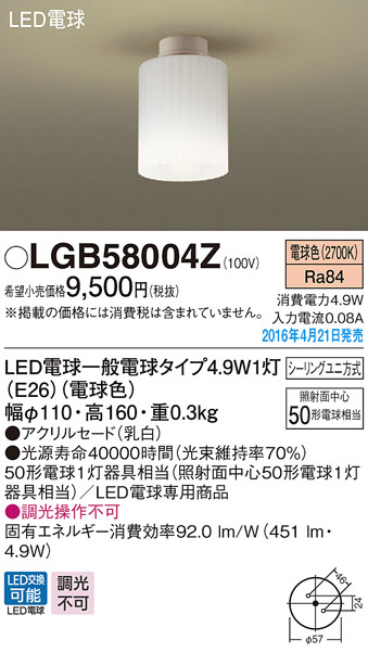 PANASONIC ¥Ñ¥Ê¥½¥Ë¥Ã¥¯ ¥·¡¼¥ê¥ó¥°¥é¥¤¥È LGB58004Z