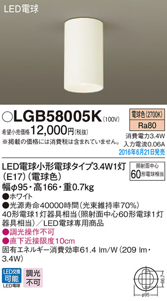 PANASONIC ¥Ñ¥Ê¥½¥Ë¥Ã¥¯ ¥·¡¼¥ê¥ó¥°¥é¥¤¥È LGB58005K