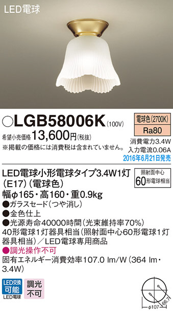 PANASONIC ¥Ñ¥Ê¥½¥Ë¥Ã¥¯ ¥·¡¼¥ê¥ó¥°¥é¥¤¥È LGB58006K