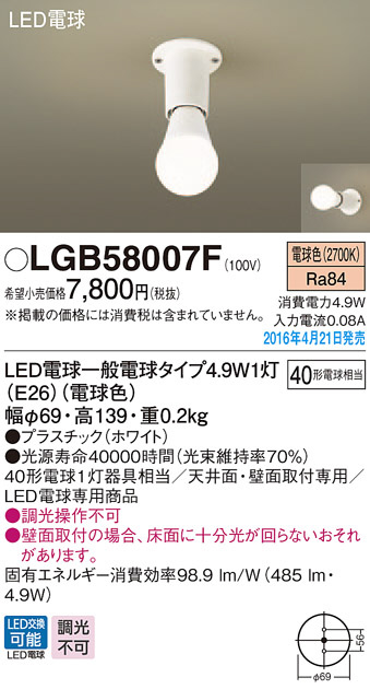 PANASONIC ¥Ñ¥Ê¥½¥Ë¥Ã¥¯ ¥·¡¼¥ê¥ó¥°¥é¥¤¥È LGB58007F