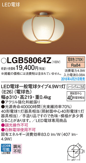 PANASONIC ¥Ñ¥Ê¥½¥Ë¥Ã¥¯ ¥·¡¼¥ê¥ó¥°¥é¥¤¥È LGB58064Z