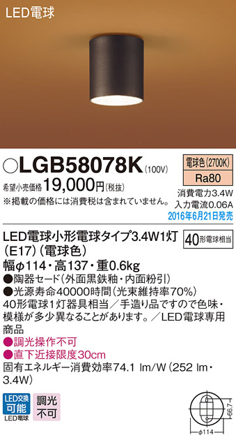 PANASONIC ¥Ñ¥Ê¥½¥Ë¥Ã¥¯ ¥·¡¼¥ê¥ó¥°¥é¥¤¥È LGB58078K
