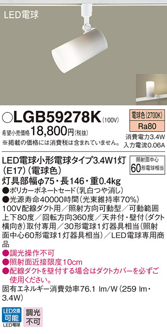 Panasonic LED ¥¹¥Ý¥Ã¥È¥é¥¤¥È LGB59278K