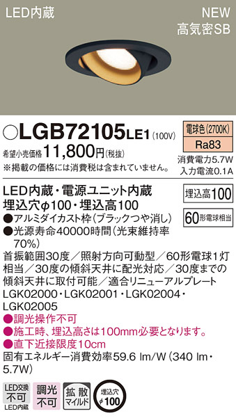 PANASONIC ¥Ñ¥Ê¥½¥Ë¥Ã¥¯ ¥À¥¦¥ó¥é¥¤¥È LGB72105LE1