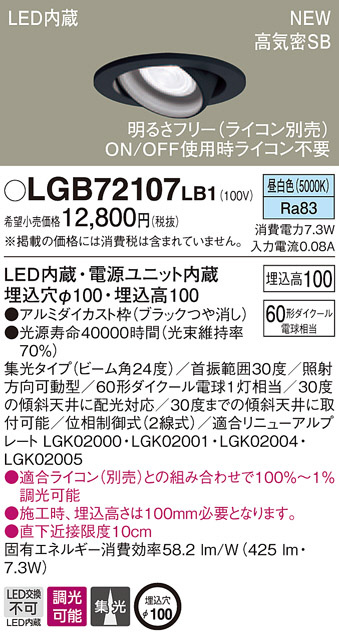 PANASONIC ¥Ñ¥Ê¥½¥Ë¥Ã¥¯ ¥À¥¦¥ó¥é¥¤¥È LGB72107LB1