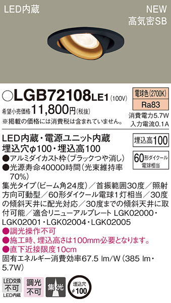 PANASONIC ¥Ñ¥Ê¥½¥Ë¥Ã¥¯ ¥À¥¦¥ó¥é¥¤¥È LGB72108LE1
