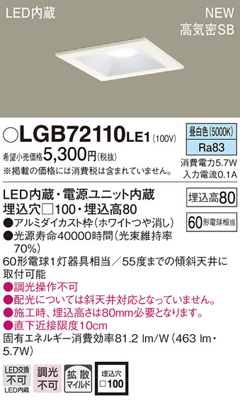 PANASONIC ¥Ñ¥Ê¥½¥Ë¥Ã¥¯ ¥À¥¦¥ó¥é¥¤¥È LGB72110LE1