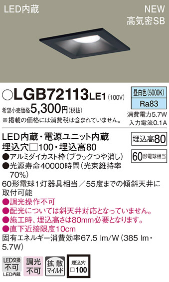 PANASONIC ¥Ñ¥Ê¥½¥Ë¥Ã¥¯ ¥À¥¦¥ó¥é¥¤¥È LGB72113LE1