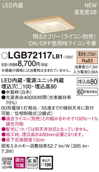 PANASONIC ¥Ñ¥Ê¥½¥Ë¥Ã¥¯ ¥À¥¦¥ó¥é¥¤¥È LGB72117LB1