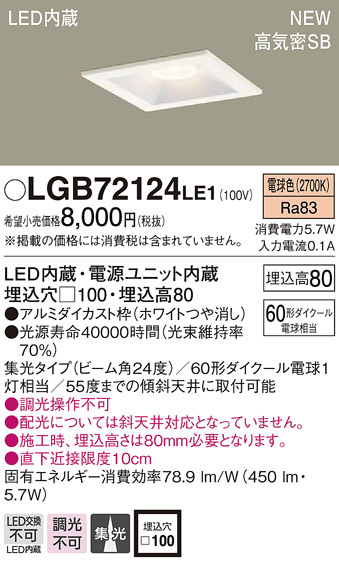 PANASONIC ¥Ñ¥Ê¥½¥Ë¥Ã¥¯ ¥À¥¦¥ó¥é¥¤¥È LGB72124LE1