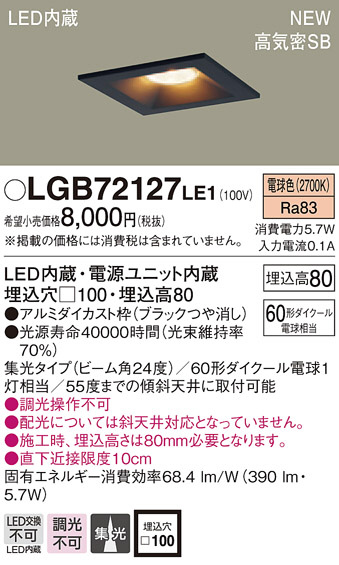 PANASONIC ¥Ñ¥Ê¥½¥Ë¥Ã¥¯ ¥À¥¦¥ó¥é¥¤¥È LGB72127LE1