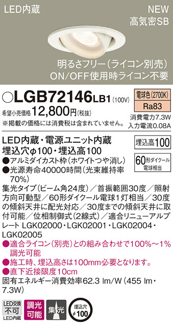 PANASONIC ¥Ñ¥Ê¥½¥Ë¥Ã¥¯ ¥À¥¦¥ó¥é¥¤¥È LGB72146LB1