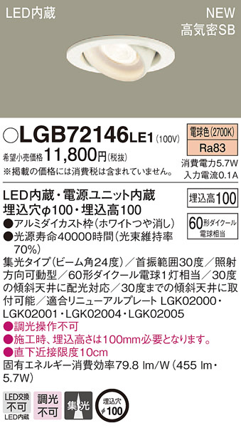 PANASONIC ¥Ñ¥Ê¥½¥Ë¥Ã¥¯ ¥À¥¦¥ó¥é¥¤¥È LGB72146LE1