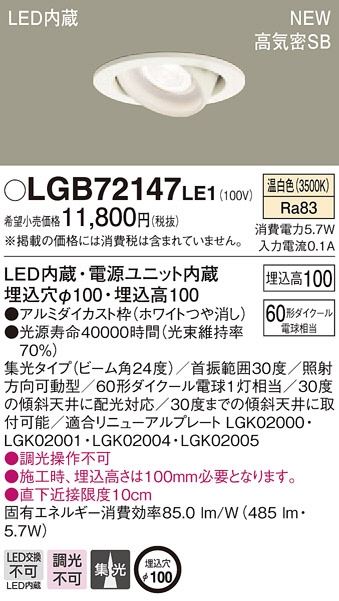 PANASONIC ¥Ñ¥Ê¥½¥Ë¥Ã¥¯ ¥À¥¦¥ó¥é¥¤¥È LGB72147LE1