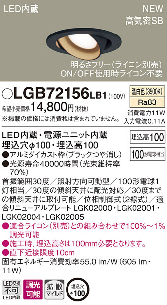 PANASONIC ¥Ñ¥Ê¥½¥Ë¥Ã¥¯ ¥À¥¦¥ó¥é¥¤¥È LGB72156LB1