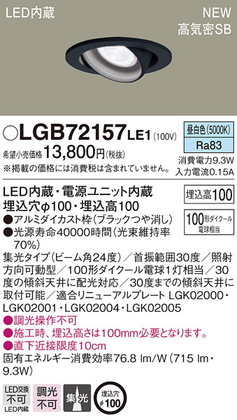 PANASONIC ¥Ñ¥Ê¥½¥Ë¥Ã¥¯ ¥À¥¦¥ó¥é¥¤¥È LGB72157LE1