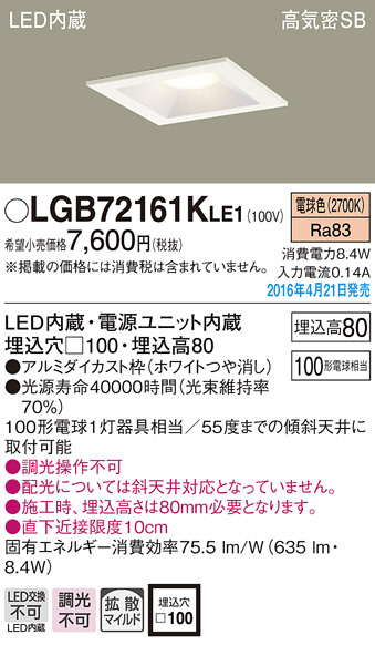 PANASONIC ¥Ñ¥Ê¥½¥Ë¥Ã¥¯ ¥À¥¦¥ó¥é¥¤¥È LGB72161KLE1