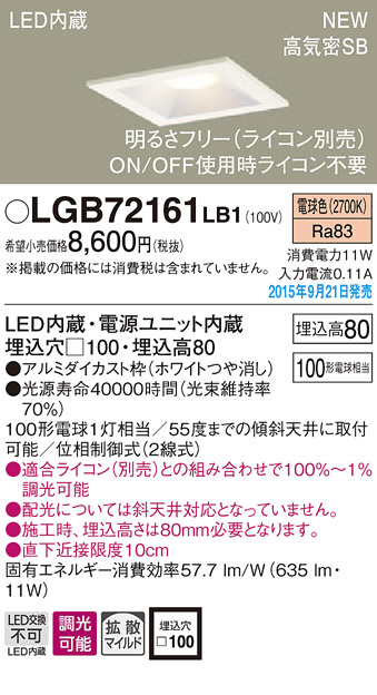 PANASONIC ¥Ñ¥Ê¥½¥Ë¥Ã¥¯ ¥À¥¦¥ó¥é¥¤¥È LGB72161LB1