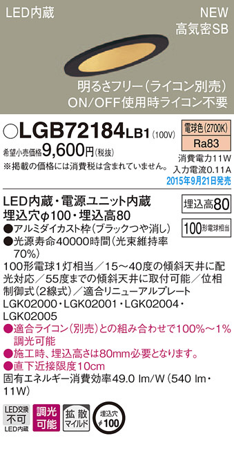 PANASONIC ¥Ñ¥Ê¥½¥Ë¥Ã¥¯ ¥À¥¦¥ó¥é¥¤¥È LGB72184LB1