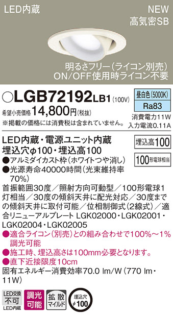 PANASONIC ¥Ñ¥Ê¥½¥Ë¥Ã¥¯ ¥À¥¦¥ó¥é¥¤¥È LGB72192LB1