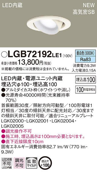 PANASONIC ¥Ñ¥Ê¥½¥Ë¥Ã¥¯ ¥À¥¦¥ó¥é¥¤¥È LGB72192LE1