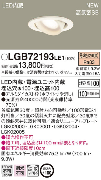 PANASONIC ¥Ñ¥Ê¥½¥Ë¥Ã¥¯ ¥À¥¦¥ó¥é¥¤¥È LGB72193LE1