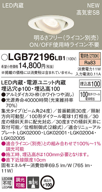 PANASONIC ¥Ñ¥Ê¥½¥Ë¥Ã¥¯ ¥À¥¦¥ó¥é¥¤¥È LGB72196LB1