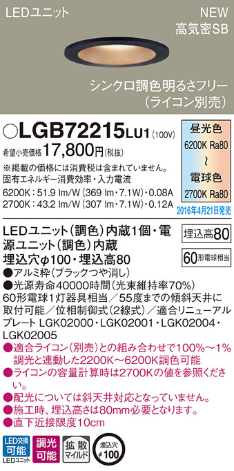 PANASONIC ¥Ñ¥Ê¥½¥Ë¥Ã¥¯ ¥À¥¦¥ó¥é¥¤¥È LGB72215LU1