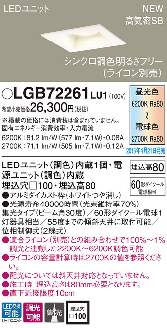 PANASONIC ¥Ñ¥Ê¥½¥Ë¥Ã¥¯ ¥À¥¦¥ó¥é¥¤¥È LGB72261LU1