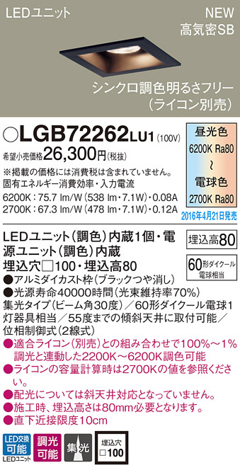 PANASONIC ¥Ñ¥Ê¥½¥Ë¥Ã¥¯ ¥À¥¦¥ó¥é¥¤¥È LGB72262LU1
