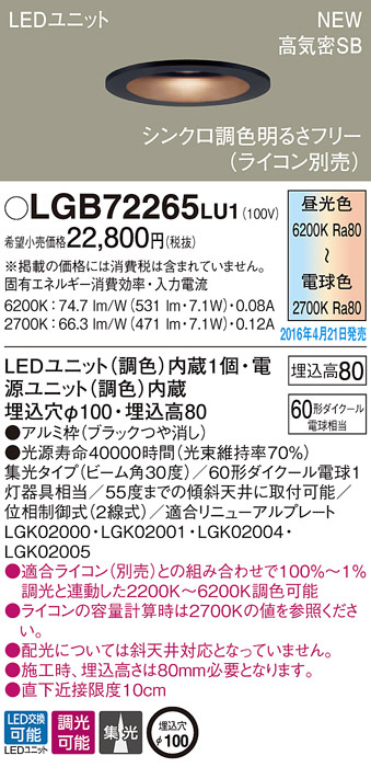 PANASONIC ¥Ñ¥Ê¥½¥Ë¥Ã¥¯ ¥À¥¦¥ó¥é¥¤¥È LGB72265LU1
