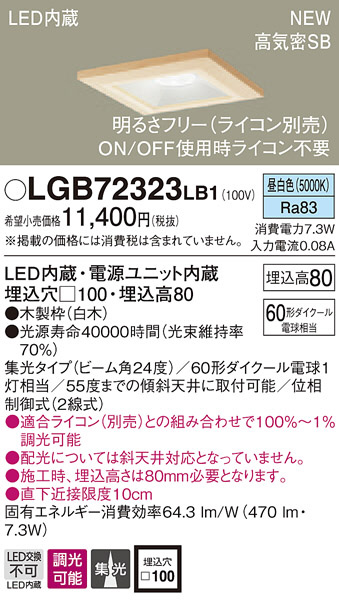 PANASONIC ¥Ñ¥Ê¥½¥Ë¥Ã¥¯ ¥À¥¦¥ó¥é¥¤¥È LGB72323LB1