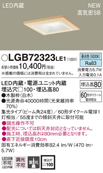 PANASONIC ¥Ñ¥Ê¥½¥Ë¥Ã¥¯ ¥À¥¦¥ó¥é¥¤¥È LGB72323LE1