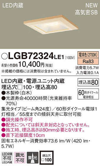 PANASONIC ¥Ñ¥Ê¥½¥Ë¥Ã¥¯ ¥À¥¦¥ó¥é¥¤¥È LGB72324LE1